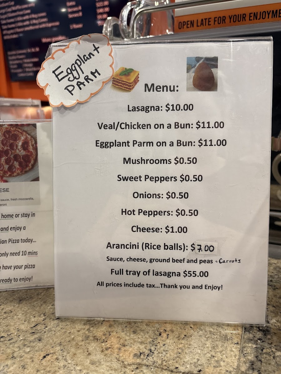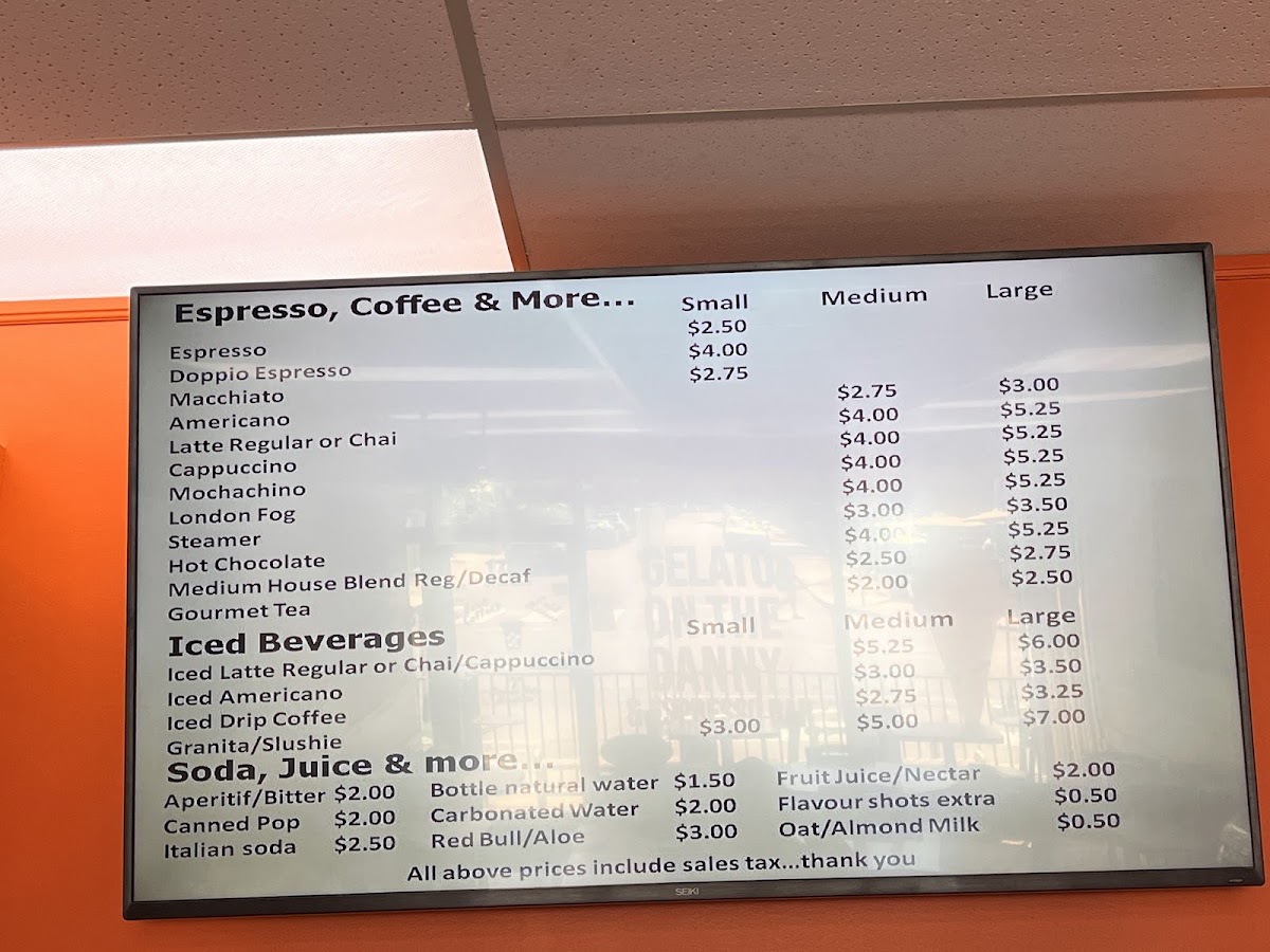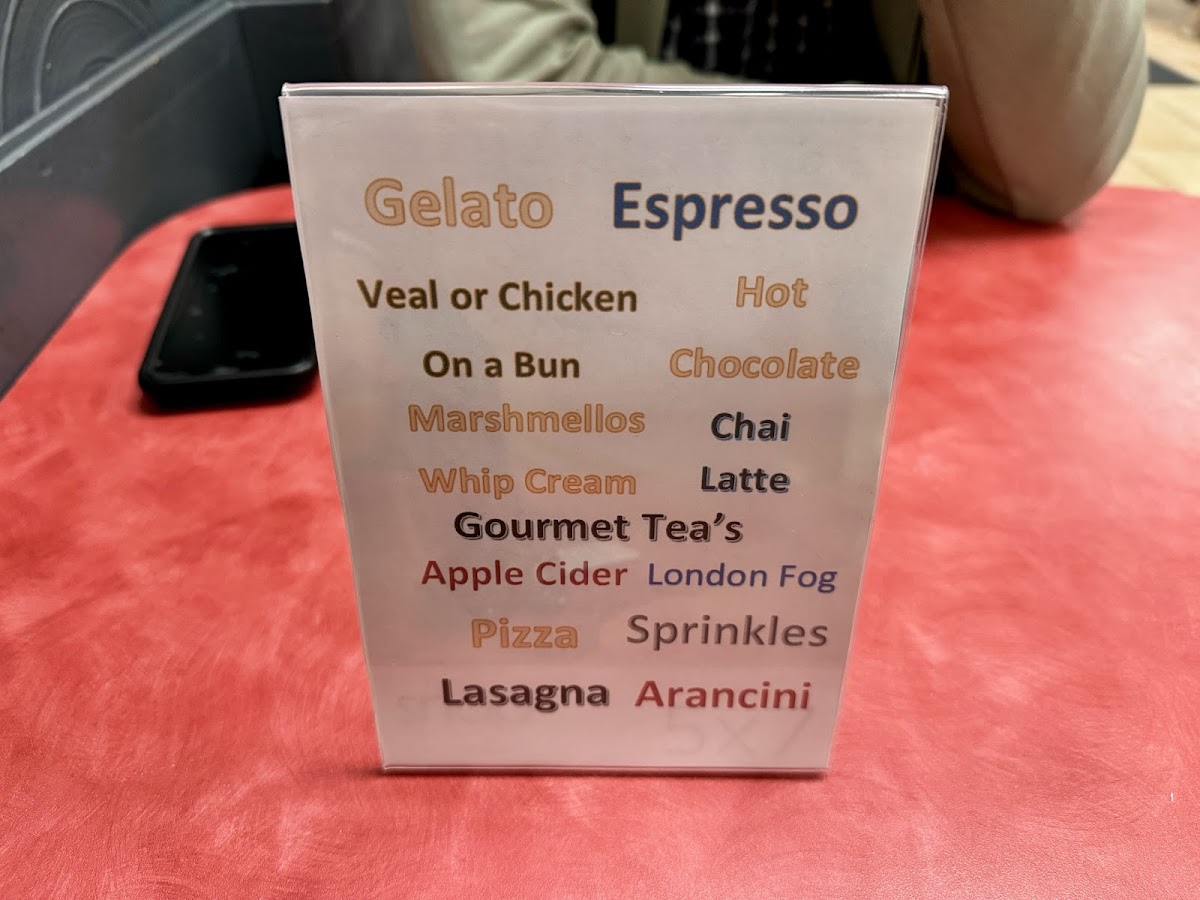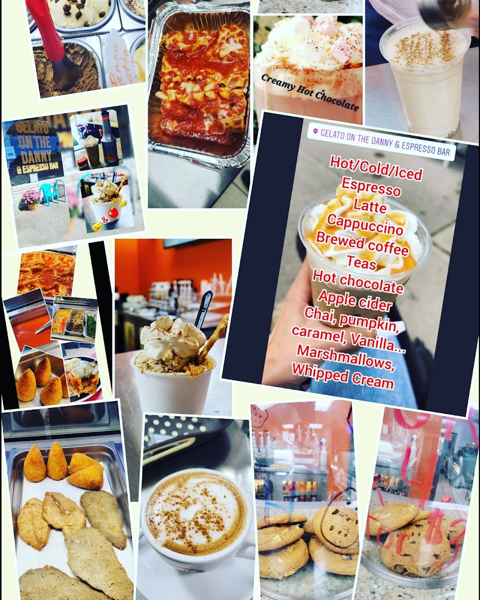 From a reviewer’s perspective, the menu at Gelato On The Danny & Espresso Bar offers a surprisingly diverse mix of hearty Italian‑inspired comfort foods alongside their well‑loved gelato and coffee selections. Diners can enjoy classic savoury options such as Lasagna (price not listed), the choice of Veal/Chicken On A Bun and the rich Eggplant Parm On A Bun With Sweet Peppers (prices vary), each bringing generous flavours that stand up well to the café’s dessert focus. Complementing these are shareable bites like Arancini (priced per order), which pair nicely with espresso drinks or a scoop from their gelato case. While this neighbourhood spot is best known for its creamy gelato and quality coffee drinks, the inclusion of substantial mains and snacks gives it broader appeal as a casual eatery where patrons can linger over both satisfying meals and sweet treats.